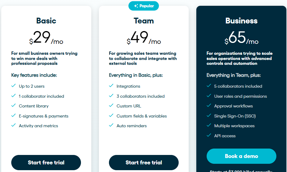 Proposify’s pricing structure is designed for businesses focused on proposal management: