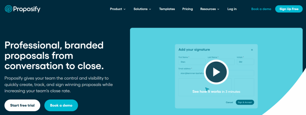 - Proposify excels if your focus is sales proposals and client collaboration. It’s ideal for sales teams looking for a simple and effective proposal management tool with real-time collaboration and tracking features. However, it lacks some of the more comprehensive document management features that PandaDoc offers.
